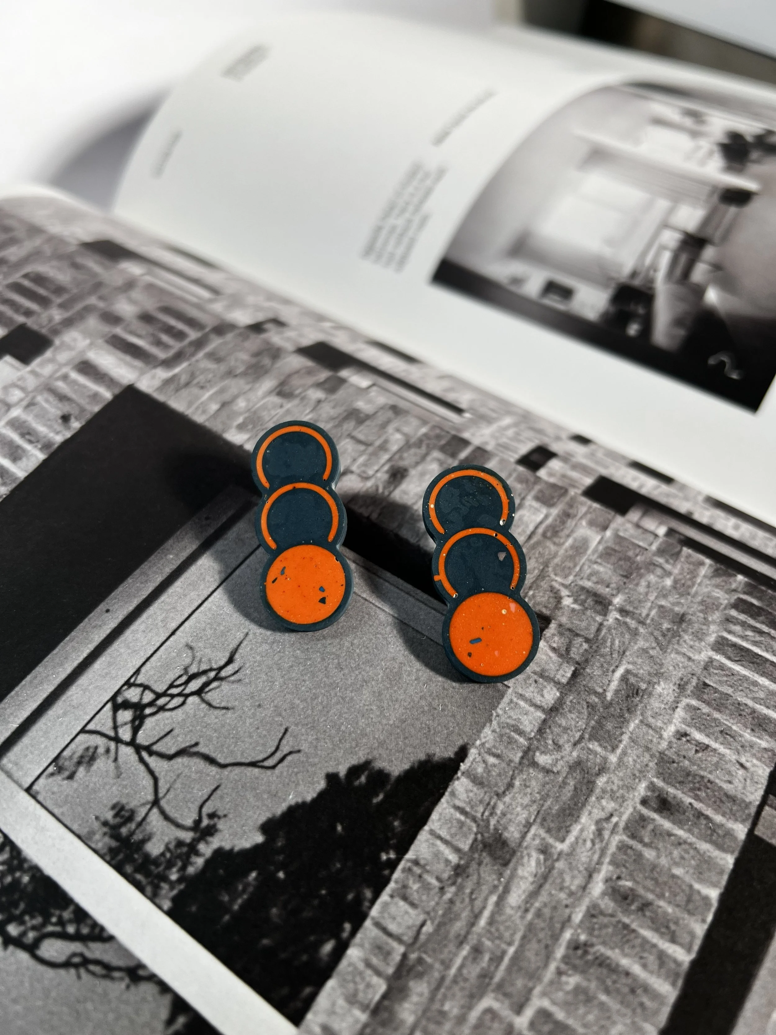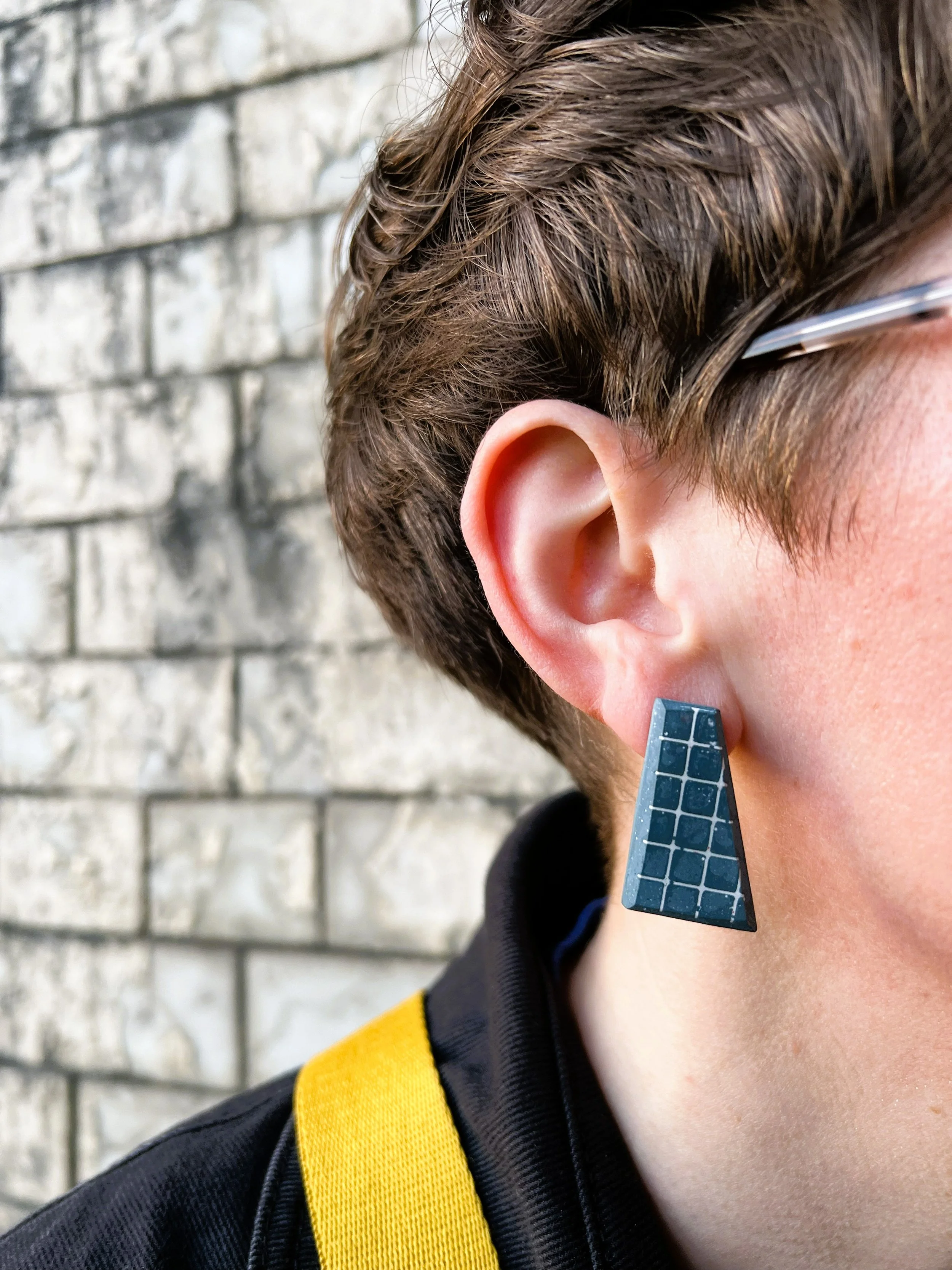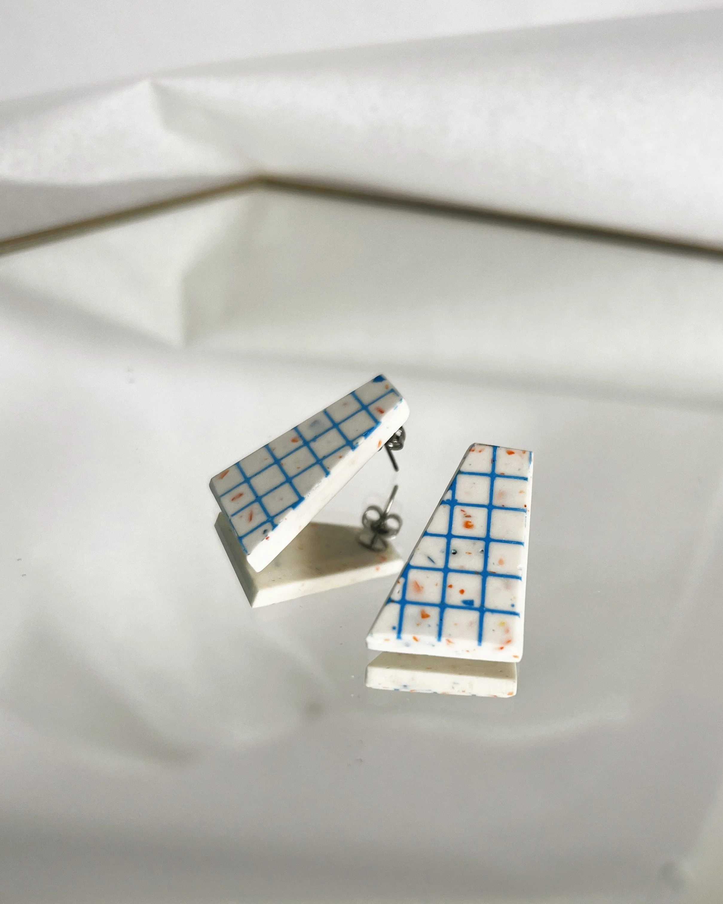 Budget friendly statement earrings - yellow and blue jesmonite earrings with a stainless steel stud - playful bold jewellery designed and handmade in Glasgow, UK